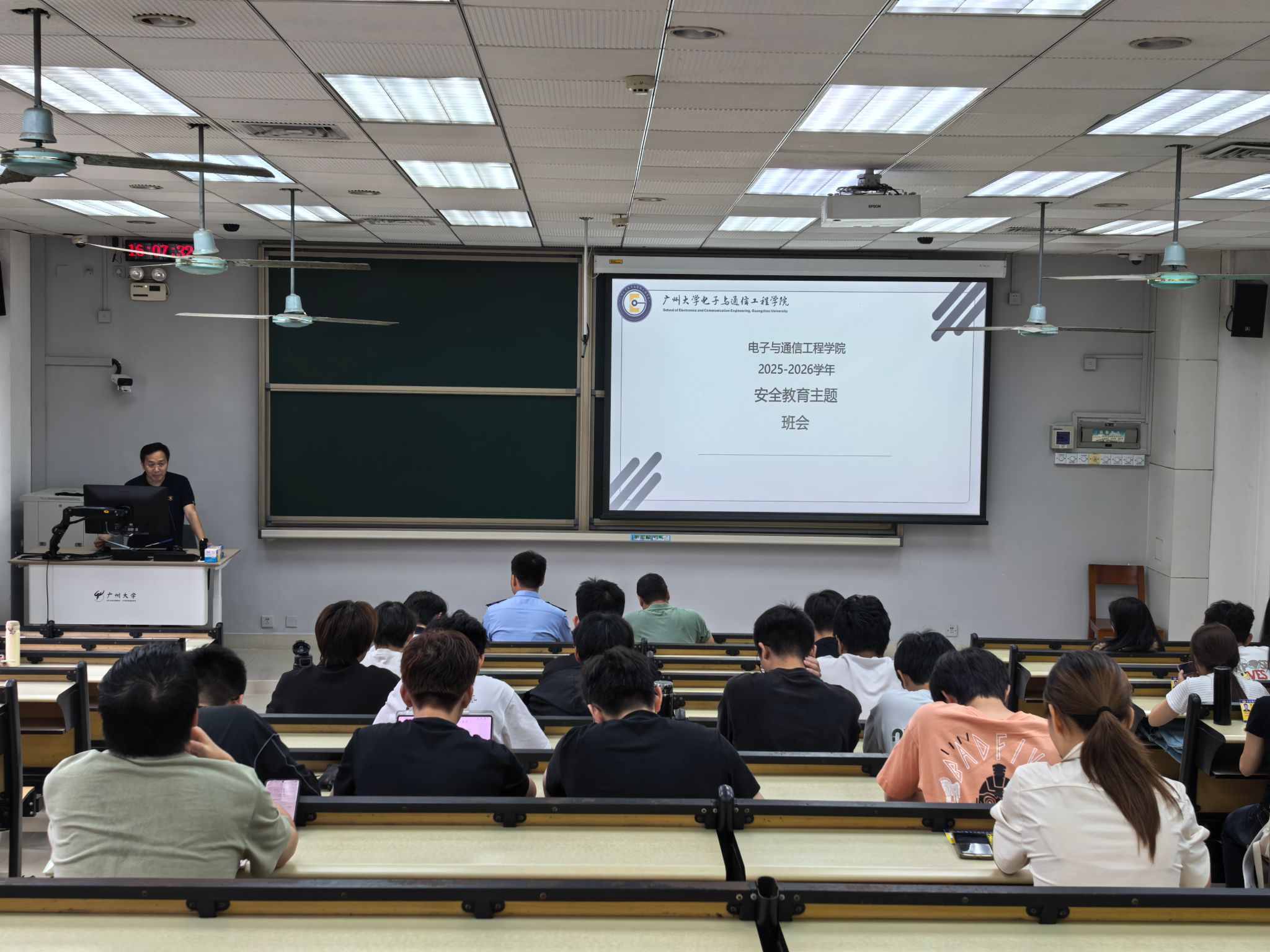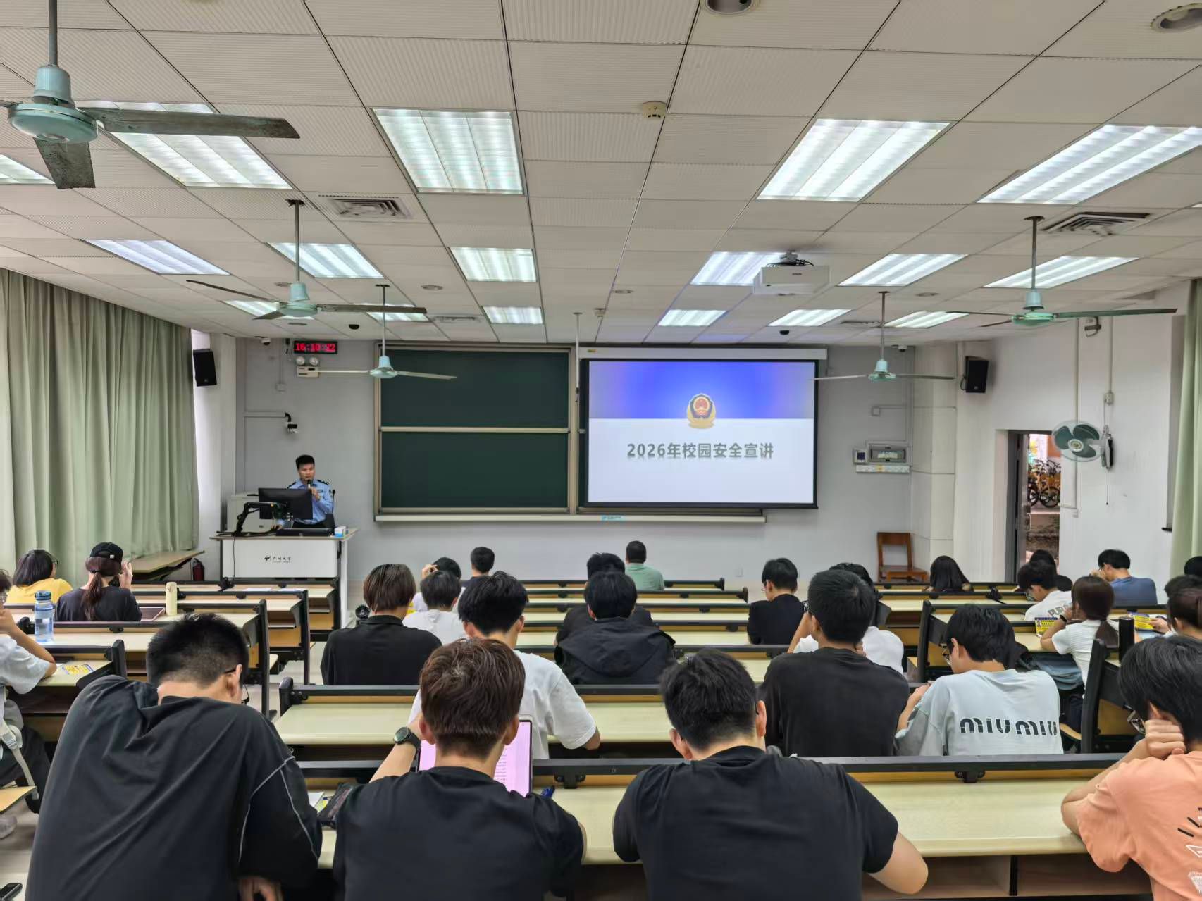 保卫处朱老师围绕校园安全综合管理、突发事件应急处置、日常安全防范规范等内容进行系统普及。他结合校园安全管理实际要求,详细讲解了校园治安防控、宿舍出入登记、贵重物品保管、外卖及个人财物防盗、消防疏散路线、应急报警流程等关键事项,明确了校园安全隐患上报渠道与规范处置流程。