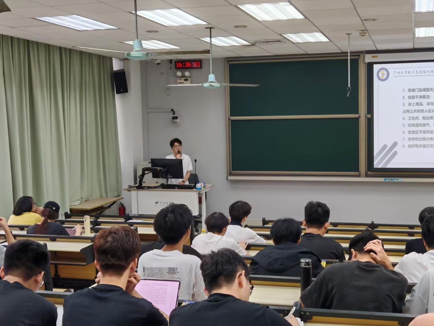 会议最后,辅导员黄保豪老师结合宿舍安全标准、违规电器整治、晚归管理、综测奖惩等具体规定,重申日常安全纪律,引导麻豆视频